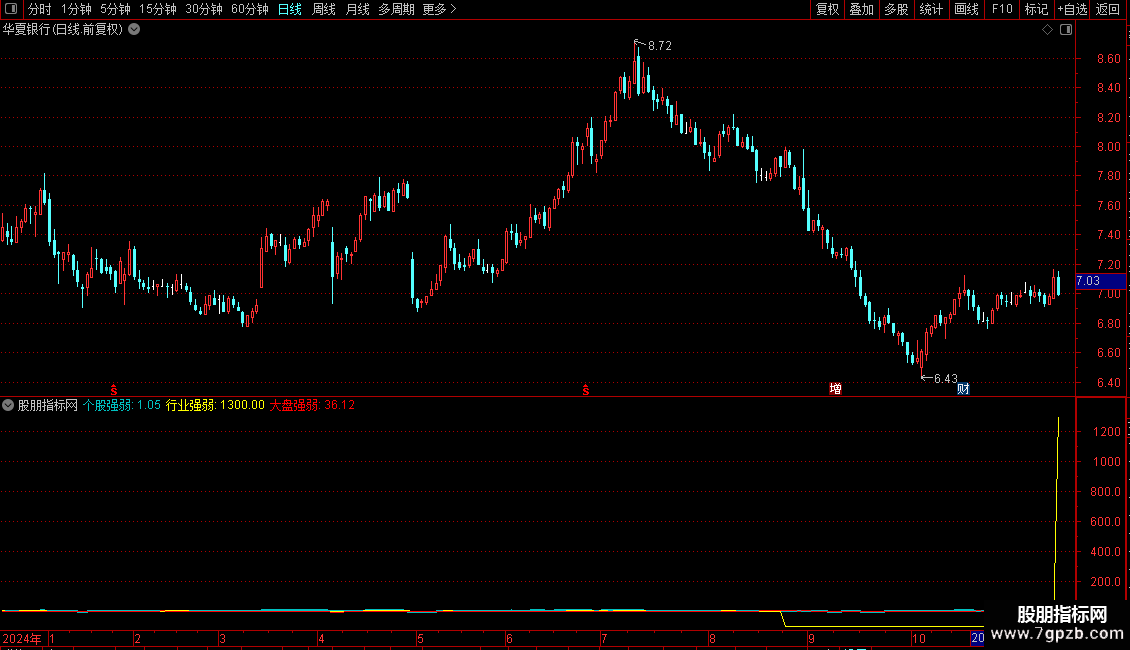 DRAWTEXT(CURRBARSCOUNT=6,行业强弱,HYBLOCK),COLORGREEN;