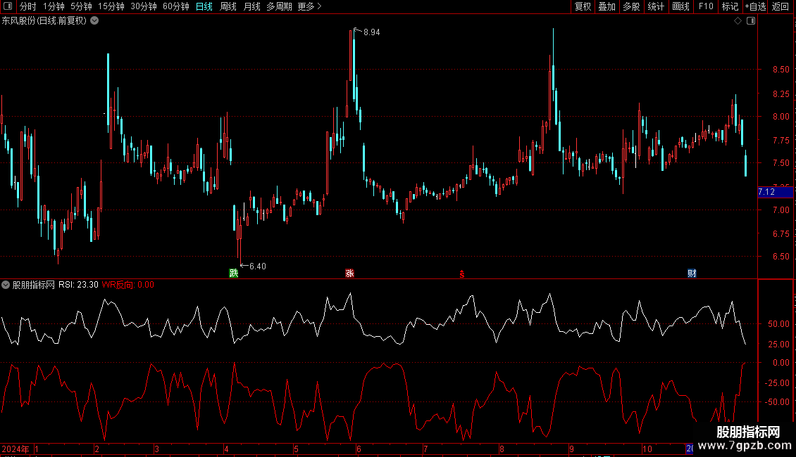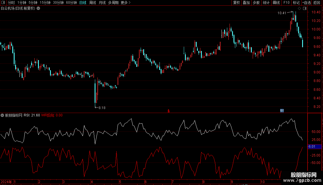 WR等于零。RSI小于5时处在超跌区。些时可以耐心观察指标底背离出现。结合信号后面的量能。