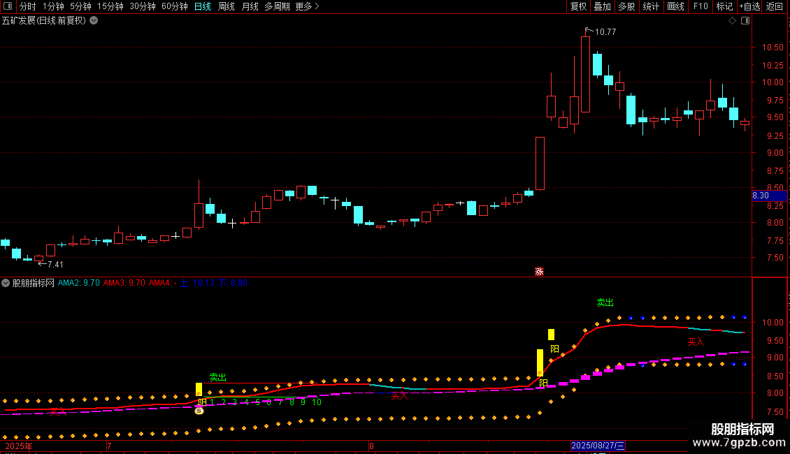 买:=IF(LLV(DX,2)=LLV(DX,7) AND COUNT(DX<0,2) AND CROSS(DX,MA(DX,2)),1,0);