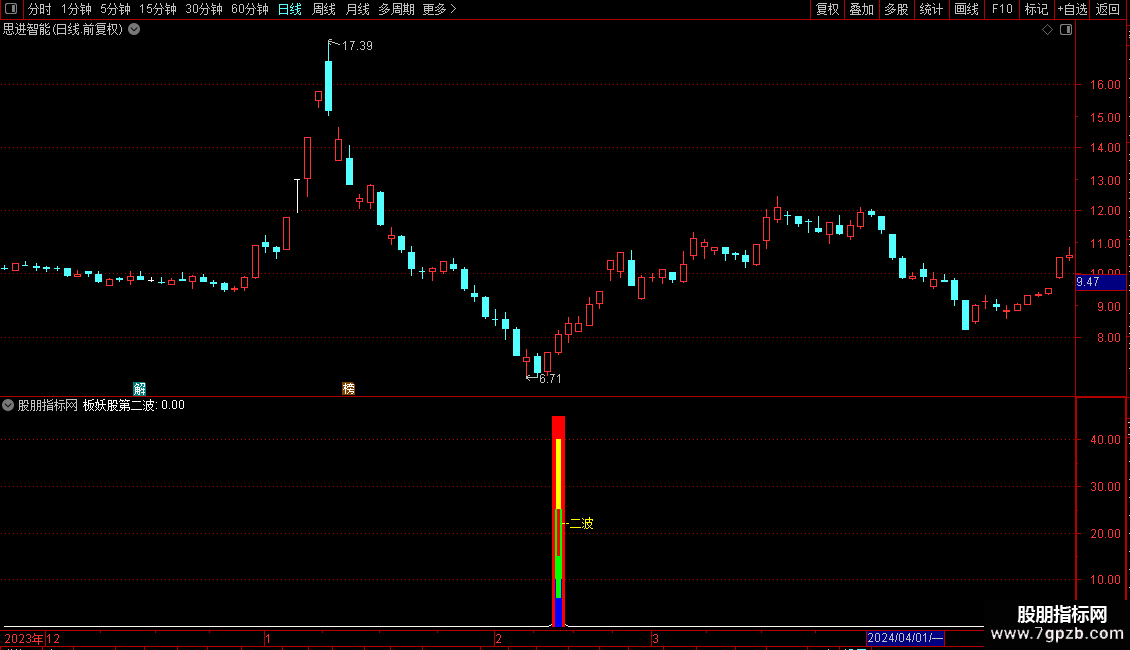 共振触发二波信号:上述条件同时满足时,标记为“板妖股第二波”——在图表上以多色柱与显眼文字提示(便于盘中快速识别)。