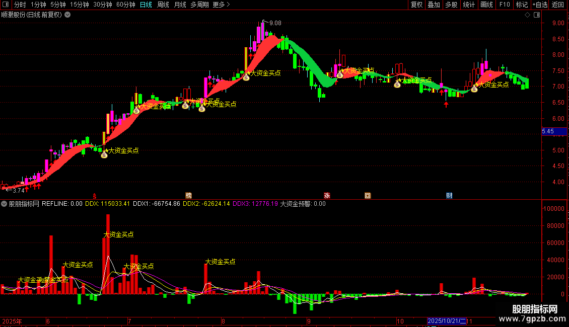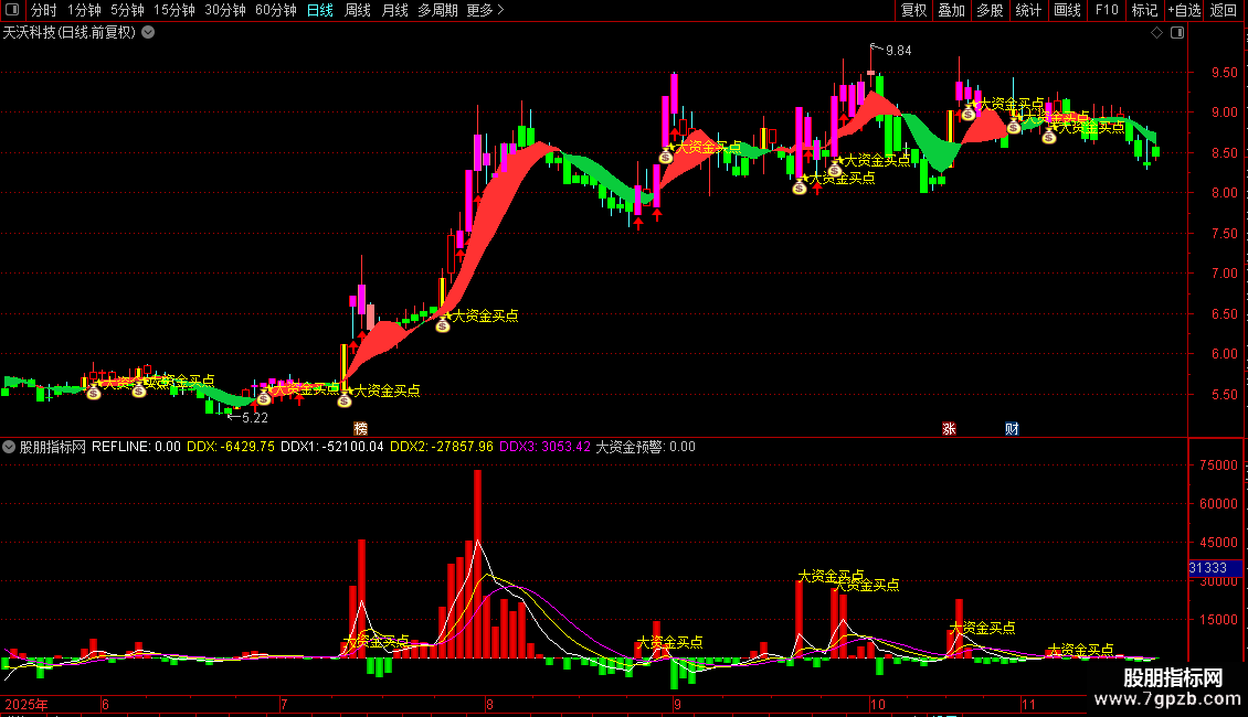 - 📈红绿带状线:5/10日均线组合,直观展示趋势强度