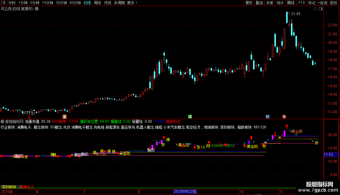 局部极点:IF(极点保留=-1,L,IF(极点保留=1,H,DRAWNULL)),CIRCLEDOT,{2.红色 }COLORRED,LINETHICK3;