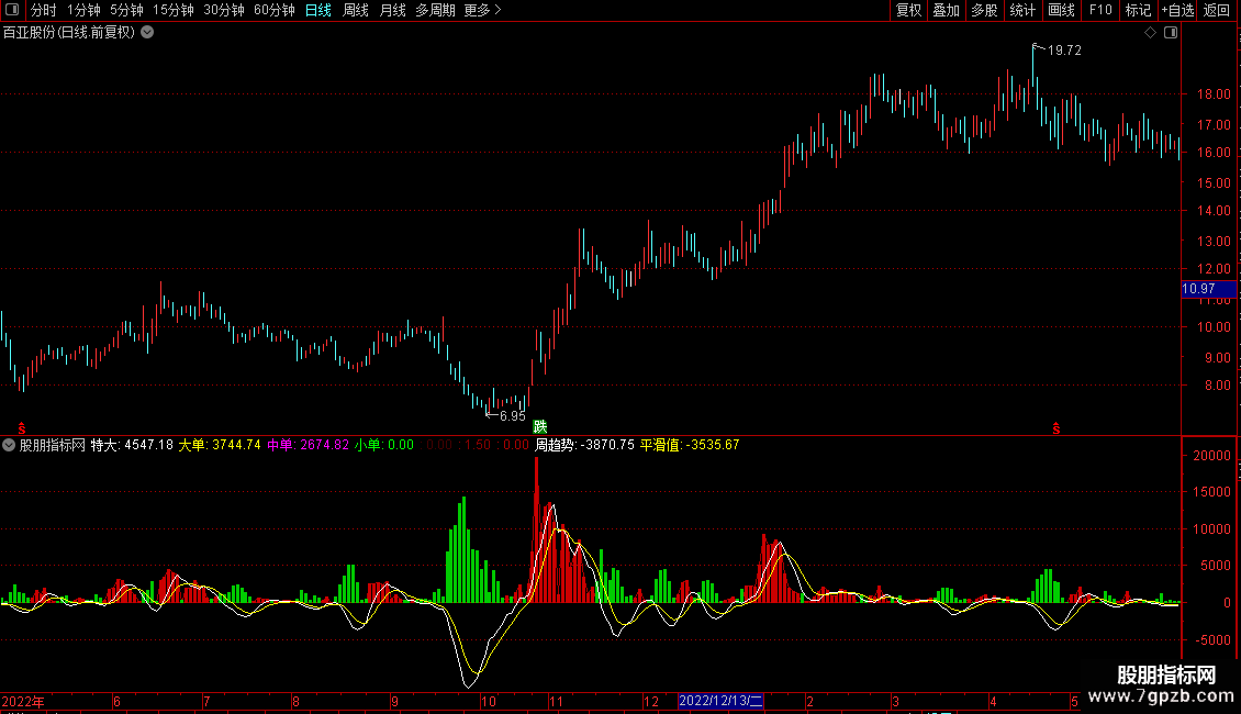 平滑值: EMA(周趋势,5),COLOR00FFFF;