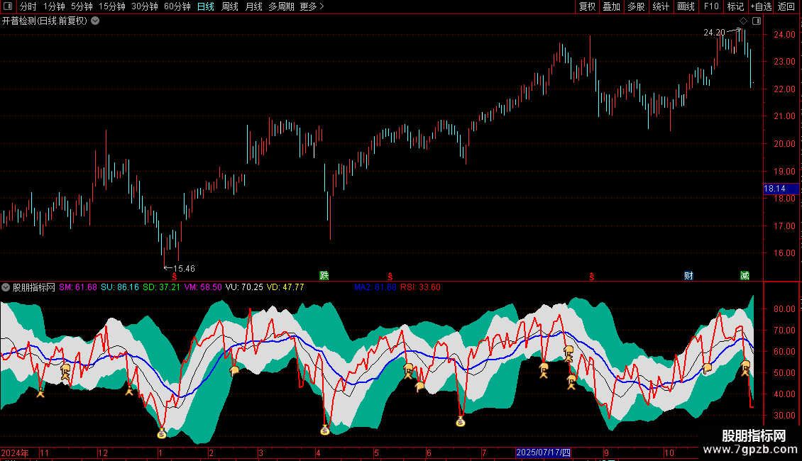 单针二十:=DRAWTEXT(短期<20 AND 长期>55,(80),'2'),COLORFFFF00;