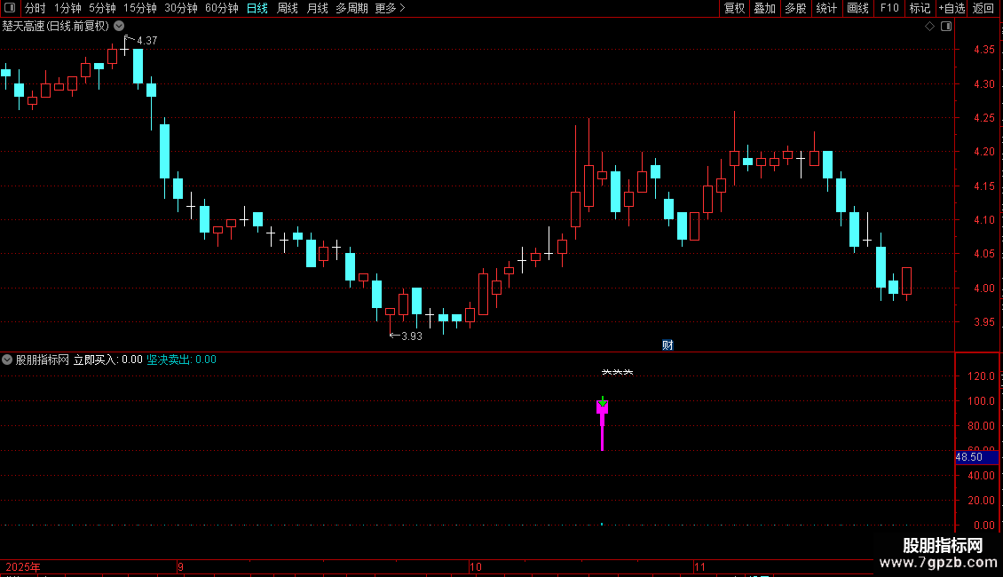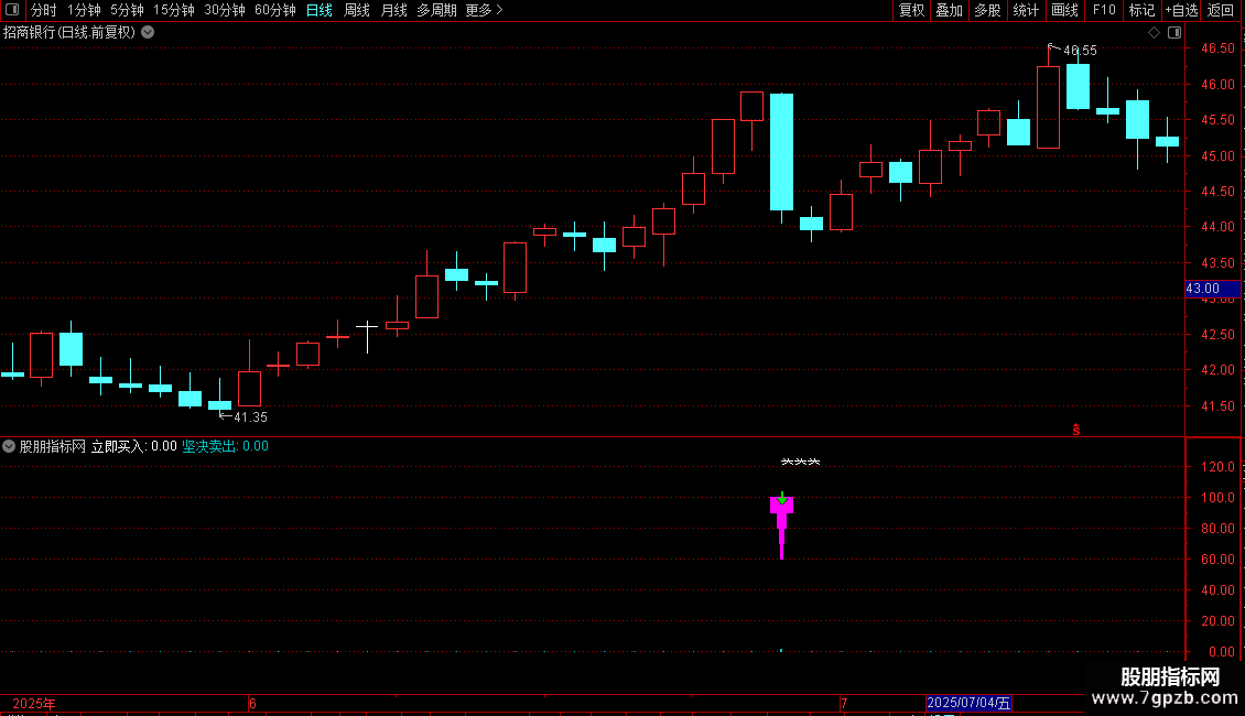 指标通过识别短期价格低点共振与强势突破信号产生买入提示,同时利用动量超买指标捕捉卖出时机。操作策略为:当出现短期底部确认且价格强势上攻时立即买入;当动能指标从高位回落时坚决卖出。