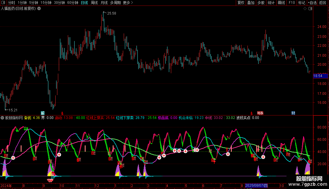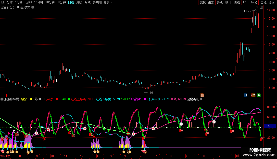 IF(机会来临>=REF(机会来临,1),机会来临,DRAWNULL),COLORCC33CC,LINETHICK2;
