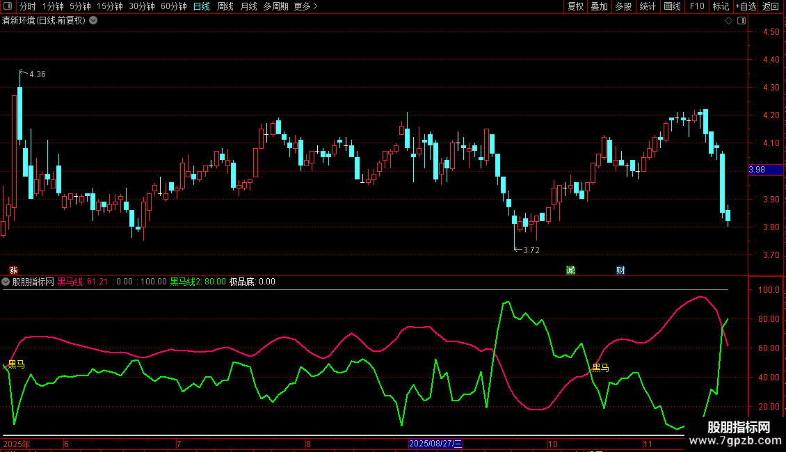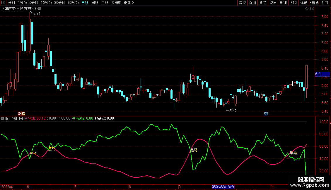 黑马线:EMA(VAR11,5), LINETHICK2,COLOR6600FF;