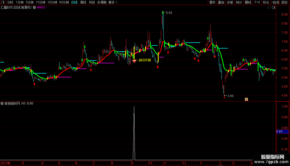 DRAWTEXT(XG,LOW*0.99,'○---启动共振'),COLORYELLOW;