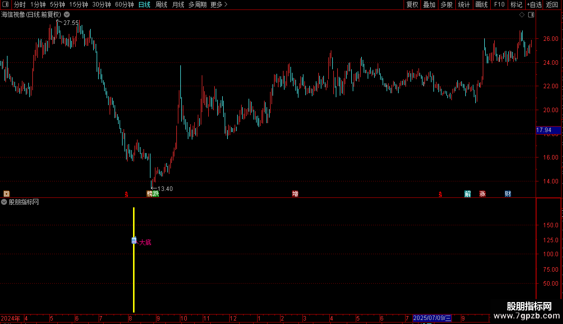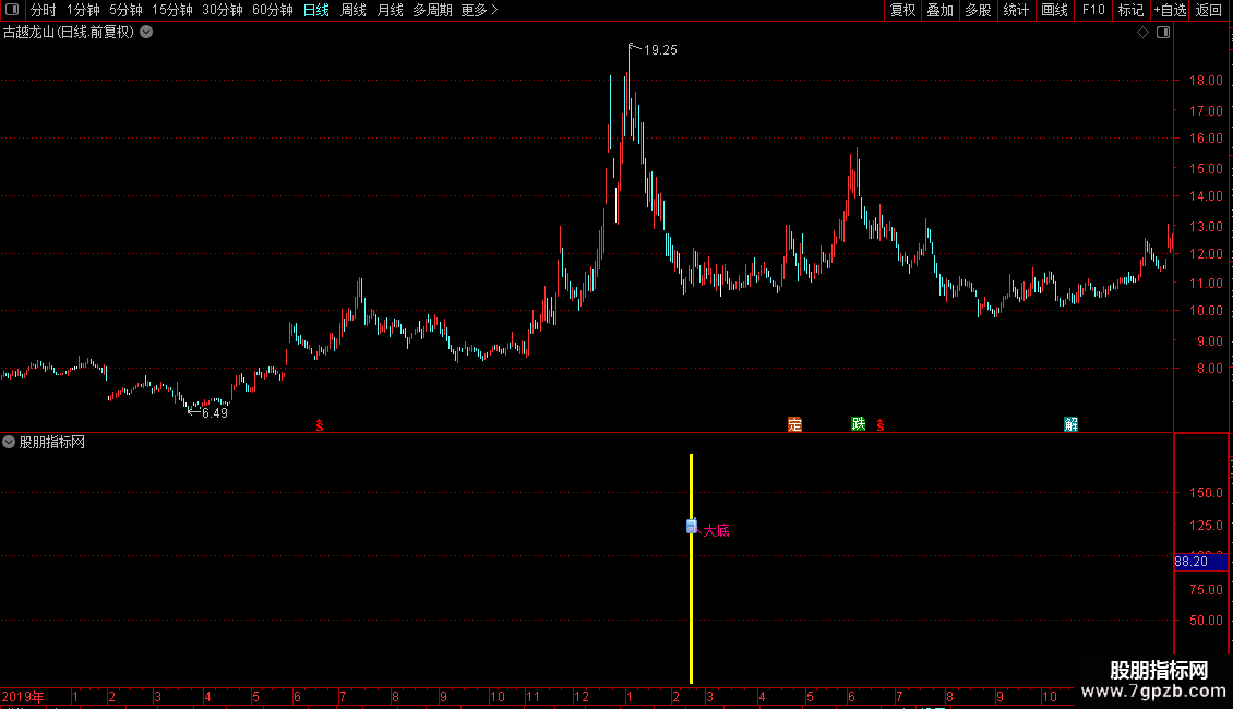 黄金坑:=IF(RRD,-35,0),COLORYELLOW,LINETHICK3;
