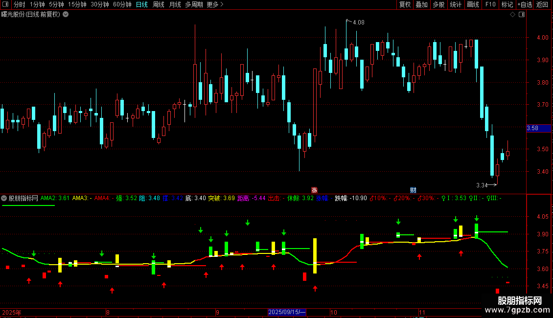 强:IF(AH>REF(C,1)*1.1,REF(C,1)*1.1,AH)NODRAW;