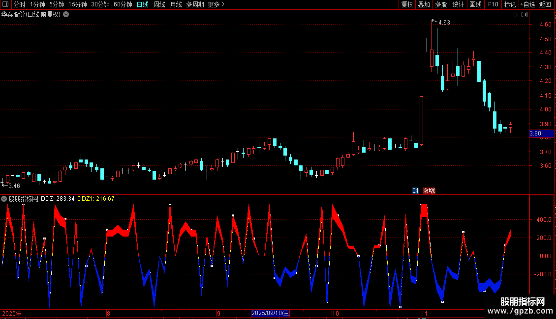 JJ:=(HIGH+LOW+CLOSE)/3;QJ0:=VOL/IF(HIGH=LOW,4,HIGH-LOW);