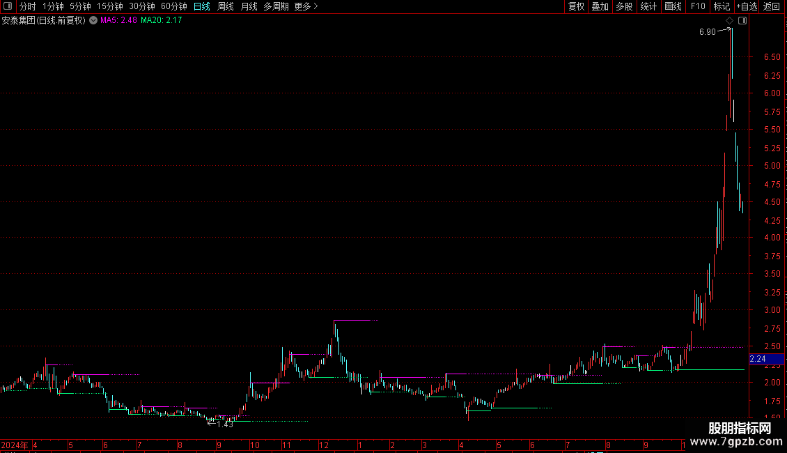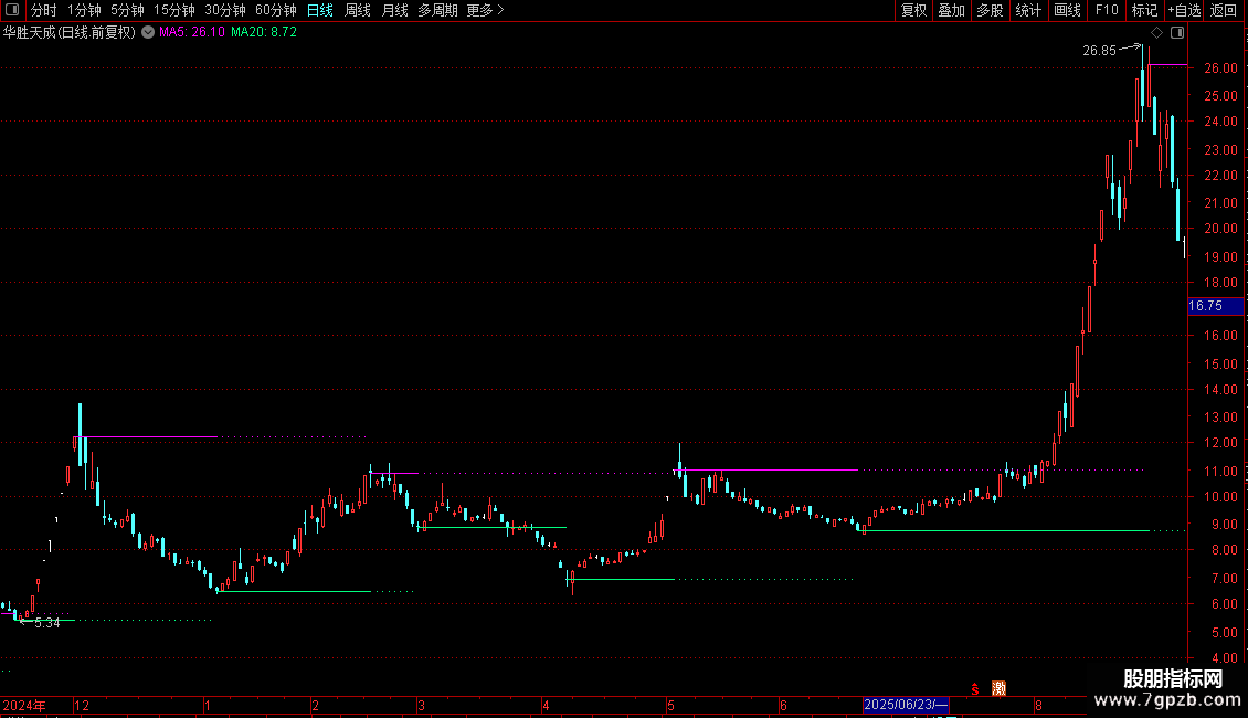【实战价值】在主图叠加显示波峰波谷双轨线,帮助交易者快速识别:1.上升趋势中的回调支撑位(波谷)2.下降趋势中的反弹压力位(波峰)3.箱体震荡的边界锚点。特别适合短线波段操作,当价格突破最近波峰/波谷时,可辅助判断趋势延续或反转信号。