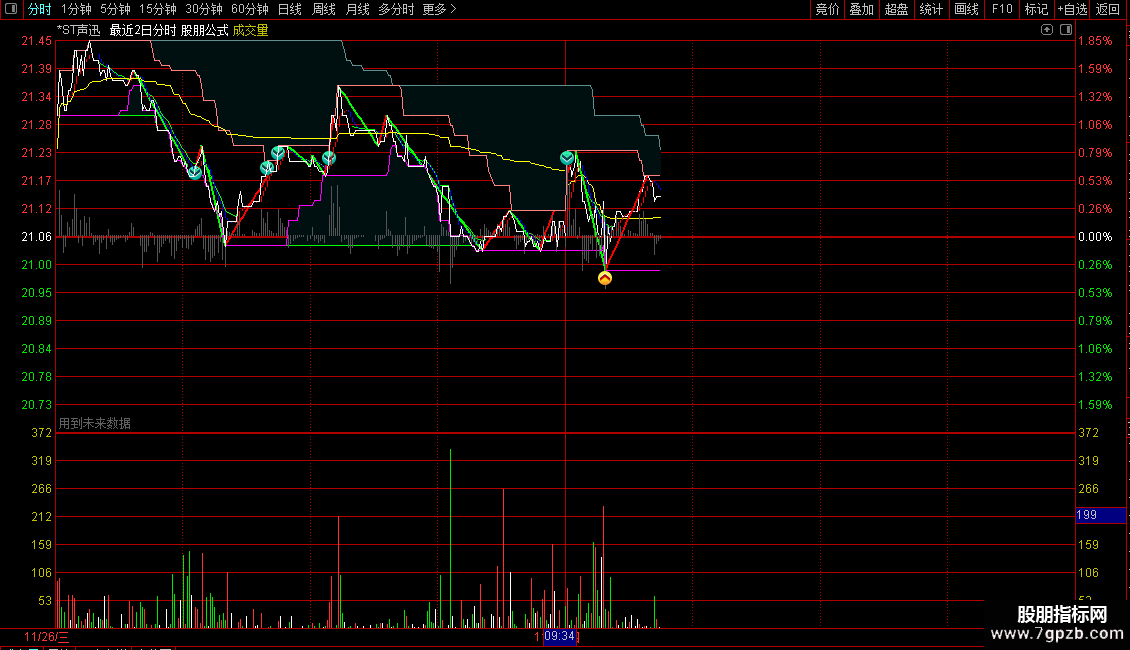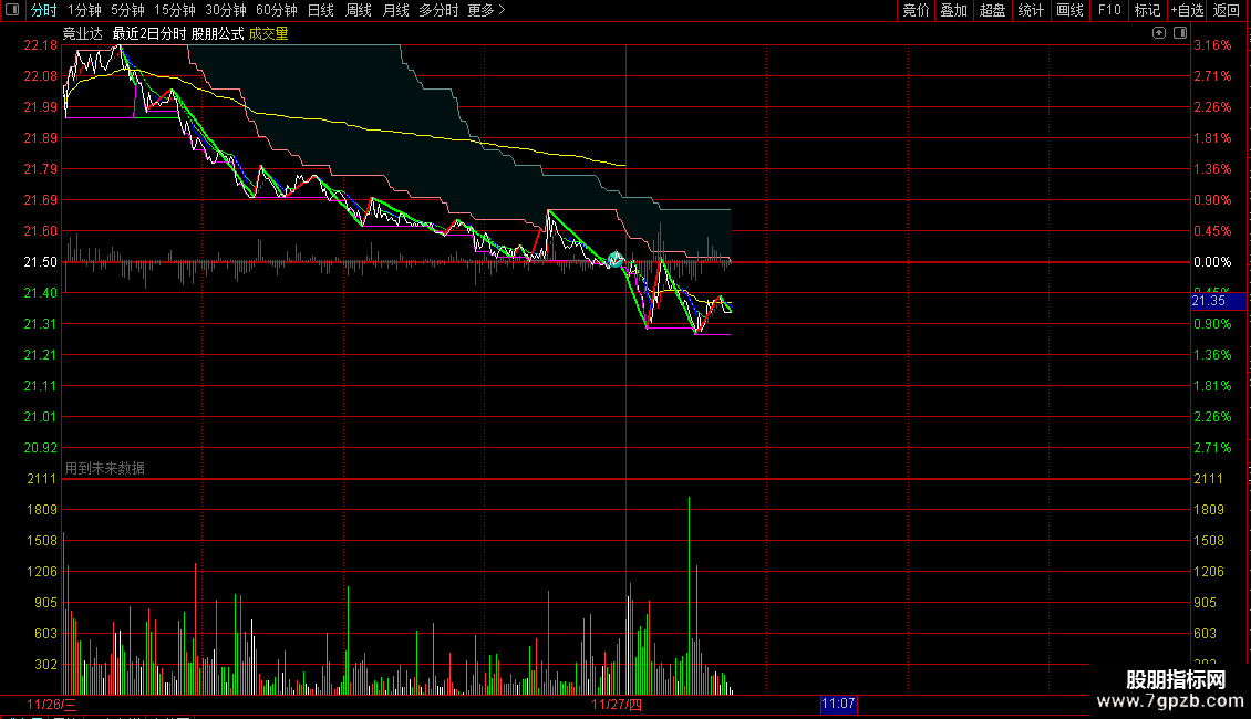 指标通过多条均线组合识别趋势方向,在价格高低点间绘制支撑阻力线,结合长短期高低点通道判断买卖时机。操作策略为:当短期均线上穿长期均线且价格突破通道上轨时买入,下穿且跌破下轨时卖出,同时监控超买超卖信号。