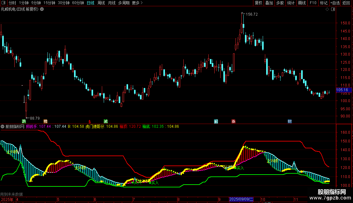 大后天均线:=C*2-REF(C,3),LINETHICK0,COLOR008888;