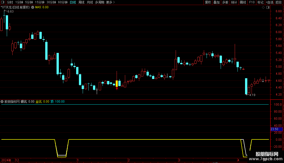 股价长期盘整中出现金银坑 可视为白金坑机会 千万不要错过 若个股以小多头方式拉升回调后出现金银坑 则是钻石坑信号 应当机立断及时介入 金银坑指标能有效识别这些关键形态