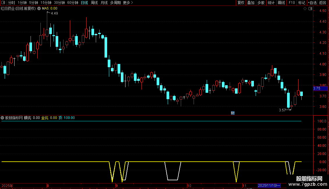 金坑:IF(A6<0,-50,0),COLORYELLOW,LINETHICK2;