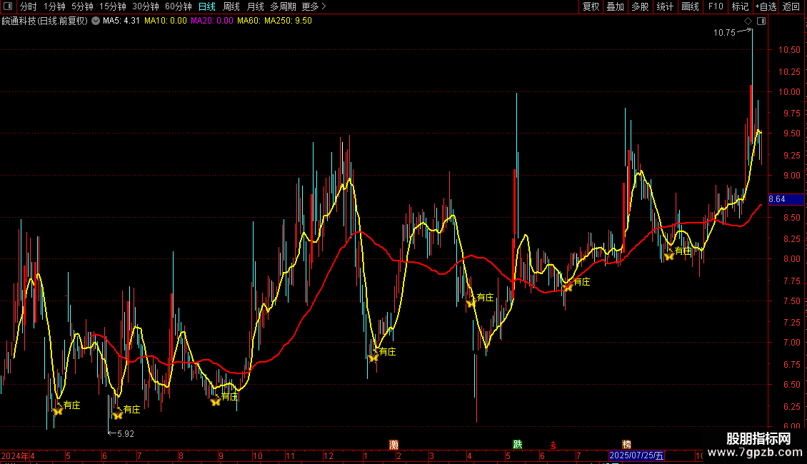 生命线:MA(CLOSE,8),COLORYELLOW LINETHICK2;