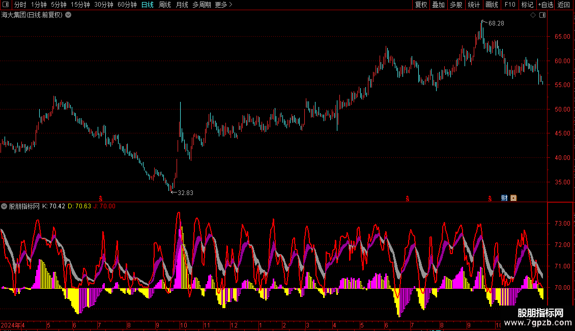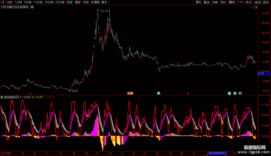 MACD和KDJ指标组合。无未来,无加密。指标来源于网上,自己使用多年,感觉指示明确,适合各时长的波段操作。