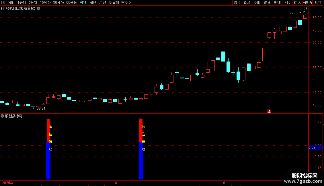 操作策略:当指标出现"低位异动"信号时,表明股票经过一段时间的低位整理后,多个技术指标同时转强,可考虑逢低关注。信号出现后配合其他分析工具确认趋势转变。