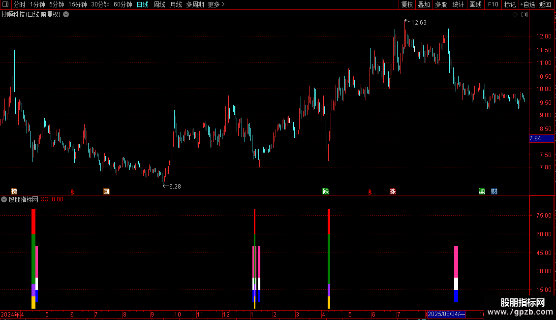 XG:EVERY(VAR5<=(-10),7) AND DYNAINFO(4)>0 AND C>1*REF(C,1),COLORRED,NODRAW;
