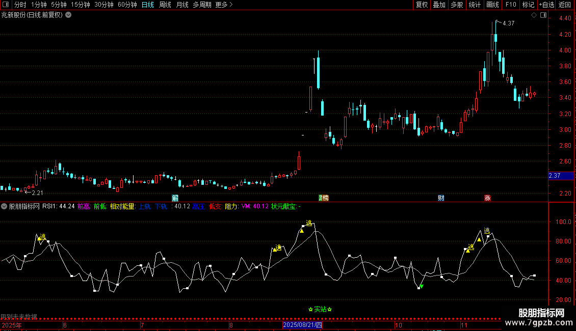 DRAWTEXT(CROSS(低,RSI1),MID,'年低'),COLORYELLOW;