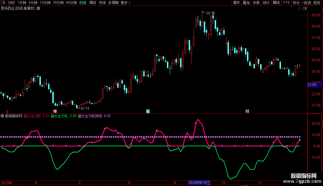 输出超大主力吃货线:8,COLORFF80FF,线宽为2,CROSSDOT