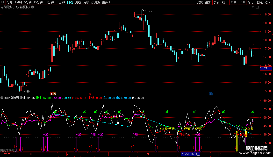 W底1:=COUNT( CROSS(快速,25),15)>=2 AND 抄底=20;