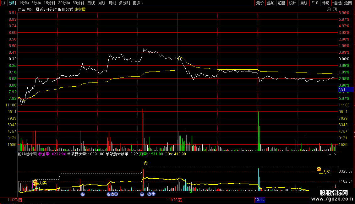 通达信分时量化量+机构量化分时机构与散户资金分时博弈副图指标