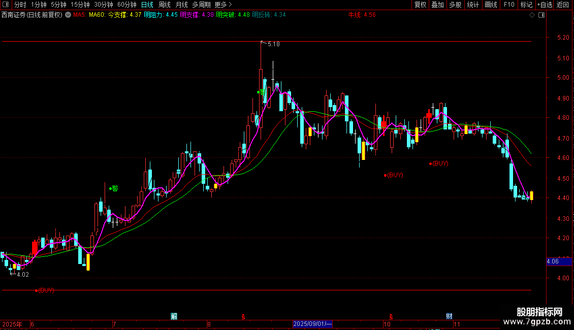 ACC:=E+(HIGH-LOW),NODRAW;ADD:=E-(HIGH-LOW),NODRAW;今阻力:REF(AAA,1),COLORWHITE,NODRAW;