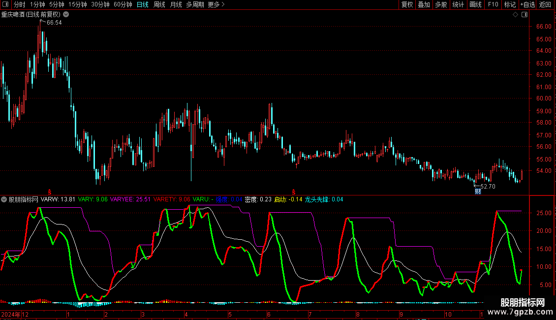 VARE赋值:(收盘价-28日内最低价的最低值)/(30日内最高价的最高值-36日内最低价的最低值)*0.6*收盘价