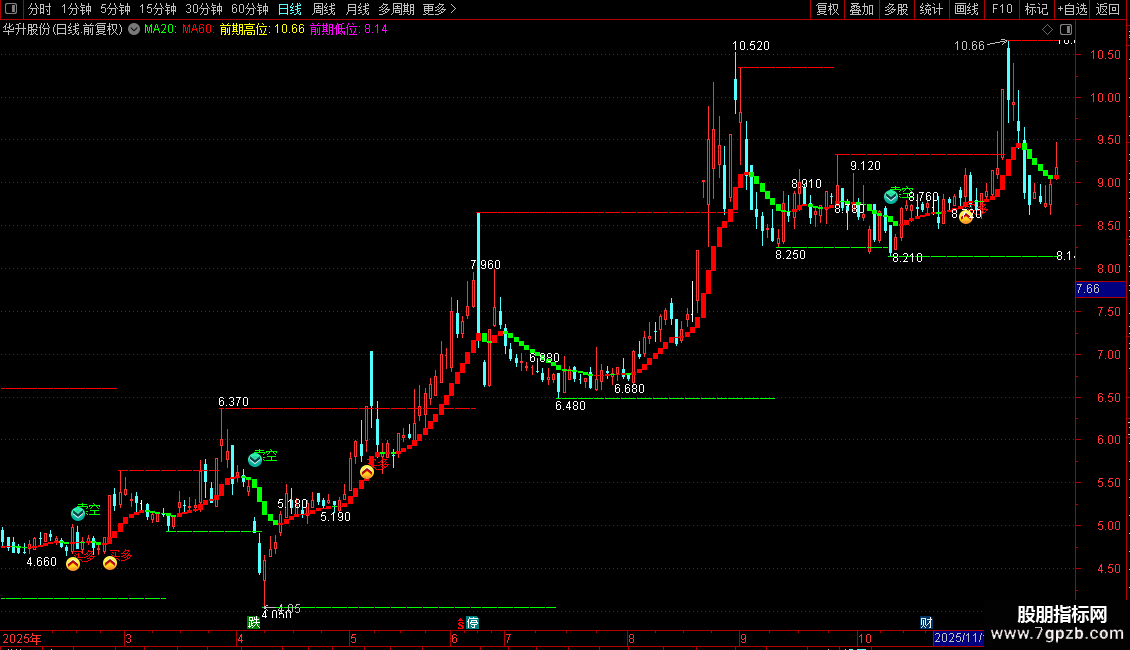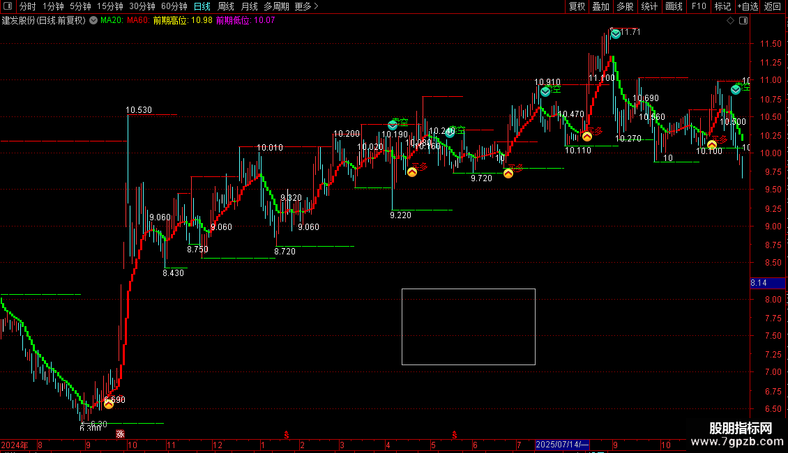 - 趋势判断:双均线金叉死叉结合能量柱颜色,把握主要运行方向