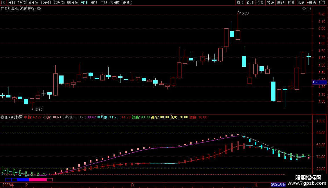 IF(小均值>=REF(小均值,1),小均值,DRAWNULL),COLORMAGENTA;