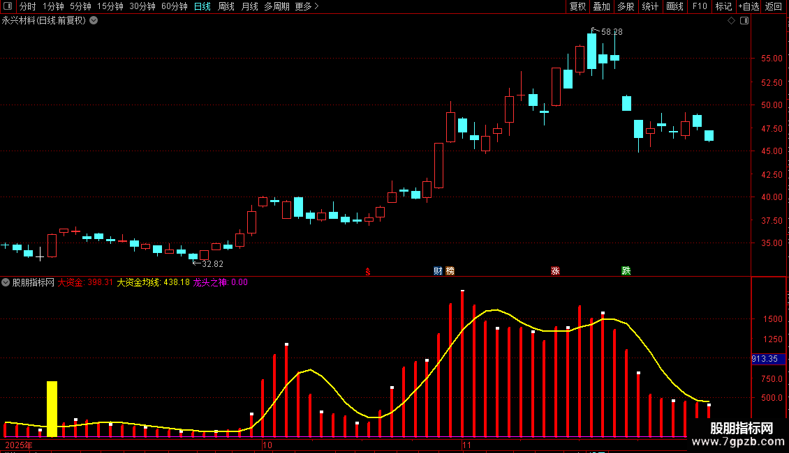 大资金均线:MA(VAR2,5),COLORYELLOW,LINETHICK2;