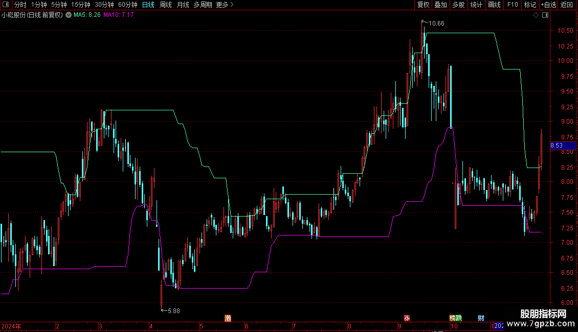 分享一个自用的压力支撑指标。回到支撑位买入,到达压力位卖出。