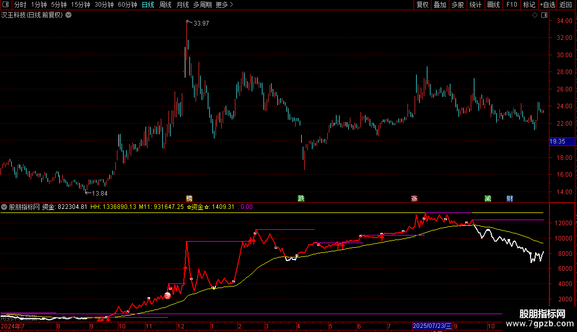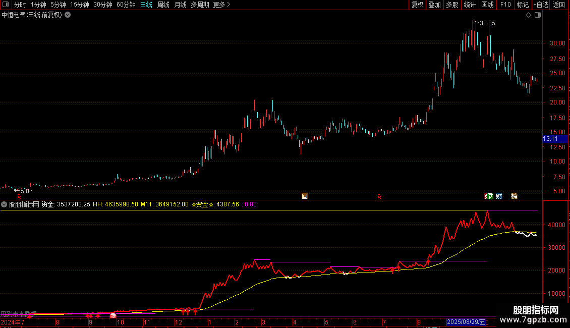 前期高点:=REF(资金,BARSLAST(DD1)),COLORFF00FF,NODRAW;