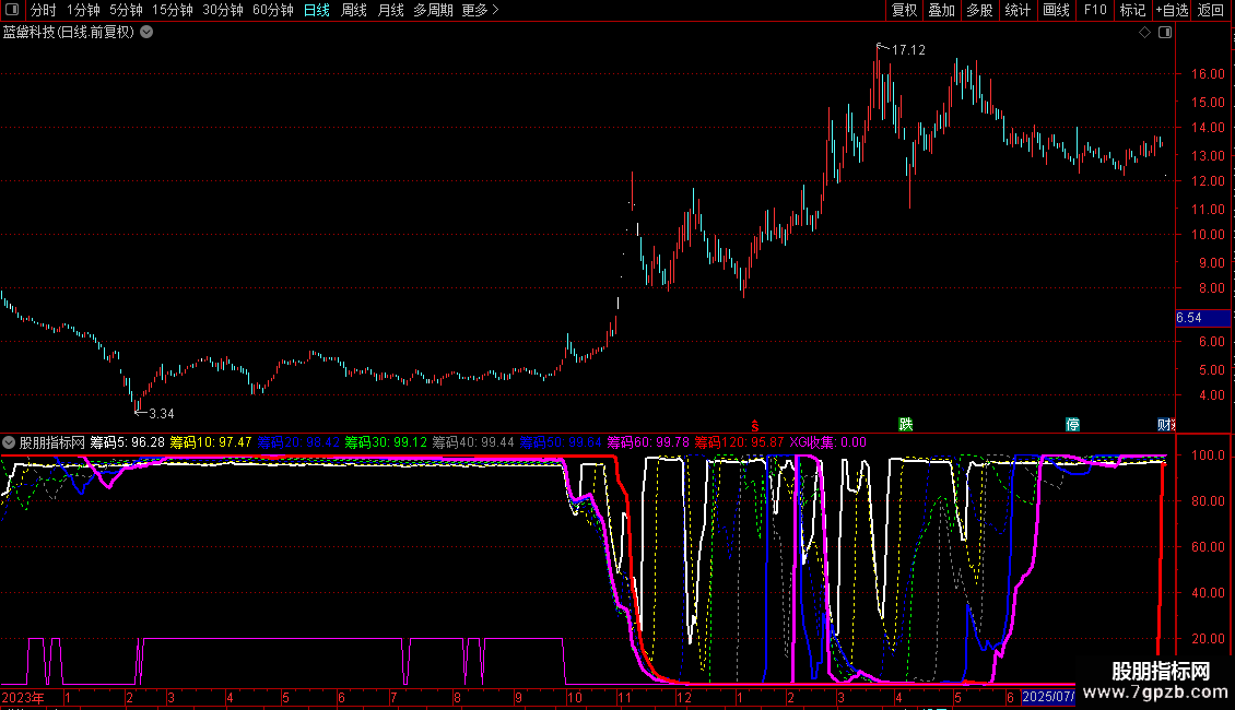 筹码周期指标通过分析不同周期的筹码分布,评估市场集中度。主要功能包括: