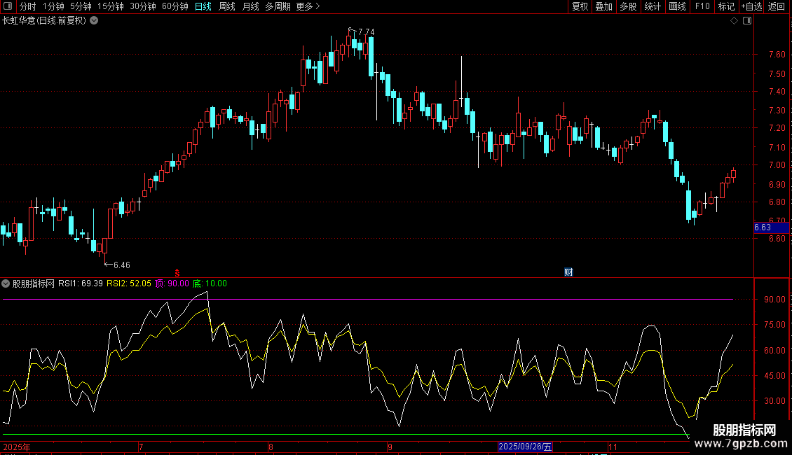 RSI2:SMA(MAX(CLOSE-LC,0),N2,1)/SMA(ABS(CLOSE-LC),N2,1)*100;