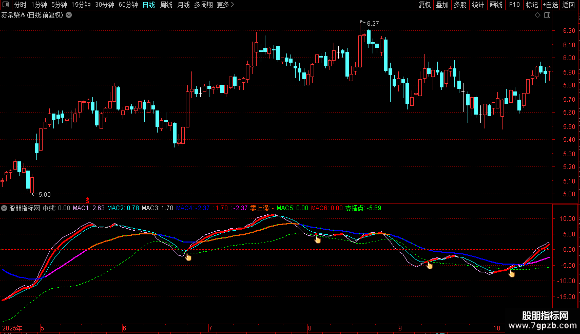 2 副图中手势图标即为买点信号 信号同步一致 建议选择波动幅度较大 股性相对活跃个股参与.