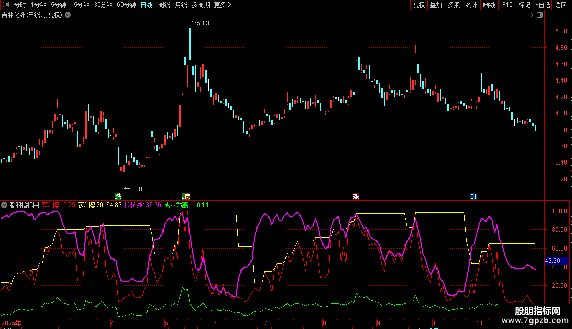 挖坑线:EMA((100+获利盘-获利盘20),3),COLORMAGENTA,LINETHICK2;