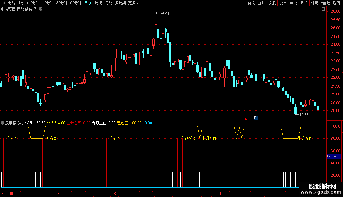 专吸庄血: IF(VAR1<=8,25,0),STICK,COLORWHITE,LINETHICK2;