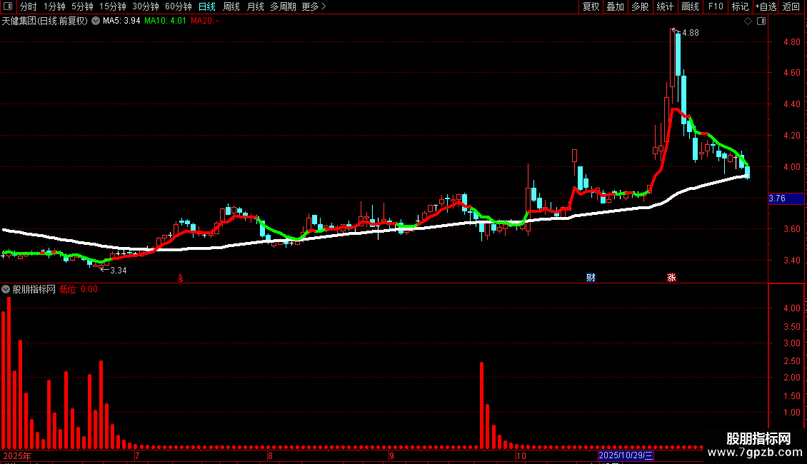 低位:IF(资金介入>0,资金介入*0.2,0),STICK,,LINETHICK5,COLORRED;