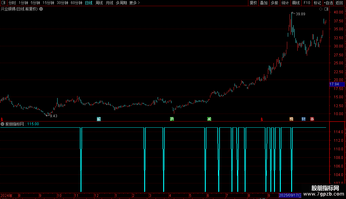IF(CROSS(K,D) AND D>55,100,115),COLORCYAN,LINETHICK2;