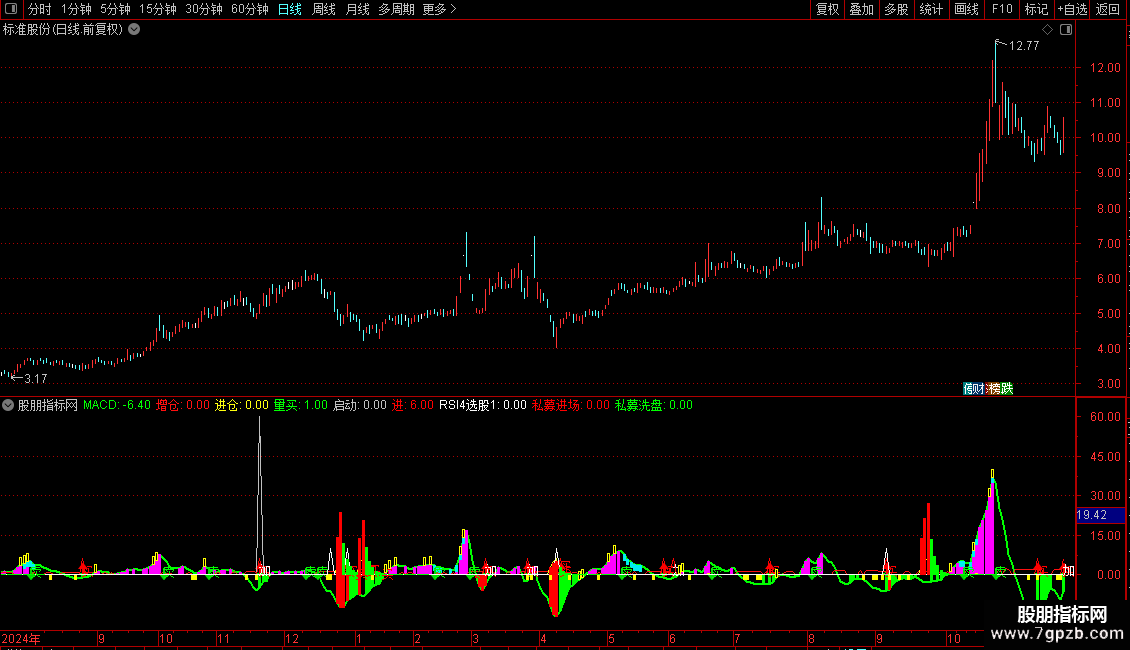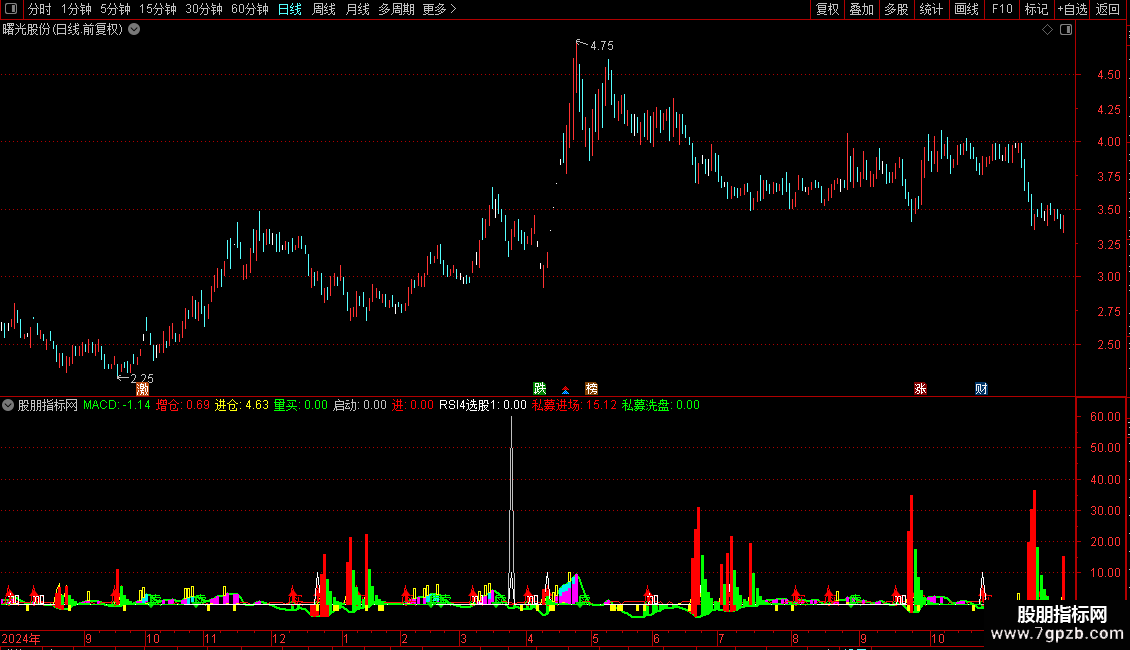 洗盘:=IF(VAR11A>REF(VAR11A,1),VAR11A*8,0),COLORFFF810,LINETHICK0;