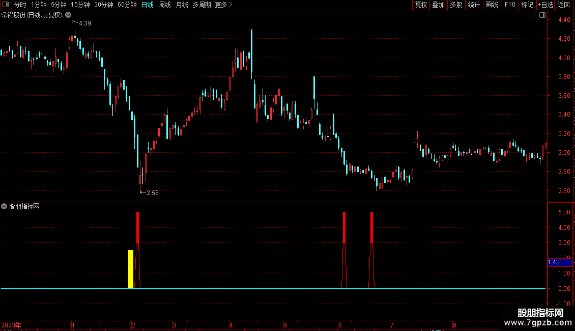 2\. 黄色柱状图:黄色柱状图表明市场正处于底部区域范围。它是判断市场是否接近底部的重要参考,提示投资者应开始密切关注个股动向。