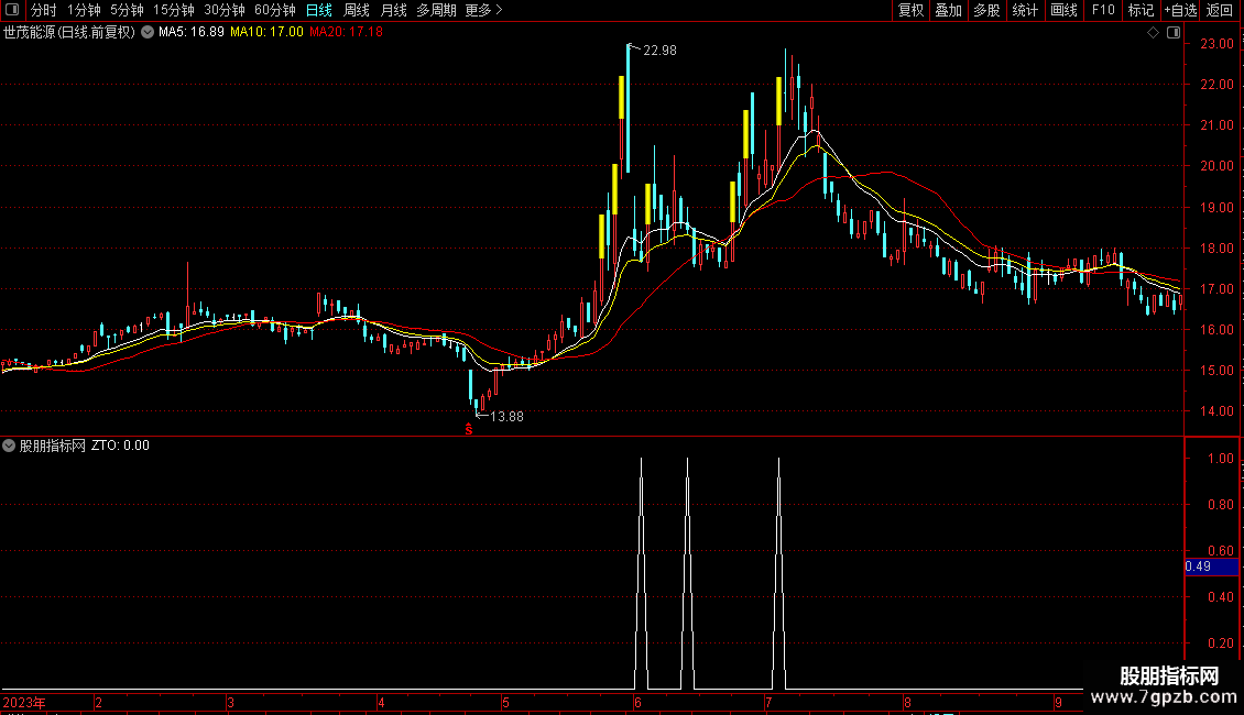 ZTO: COUNT(ZT,12)>=3 AND DYNAINFO(37)>0 AND ZD AND LAST(L>0.98*E17,3,0) AND ZF ;
