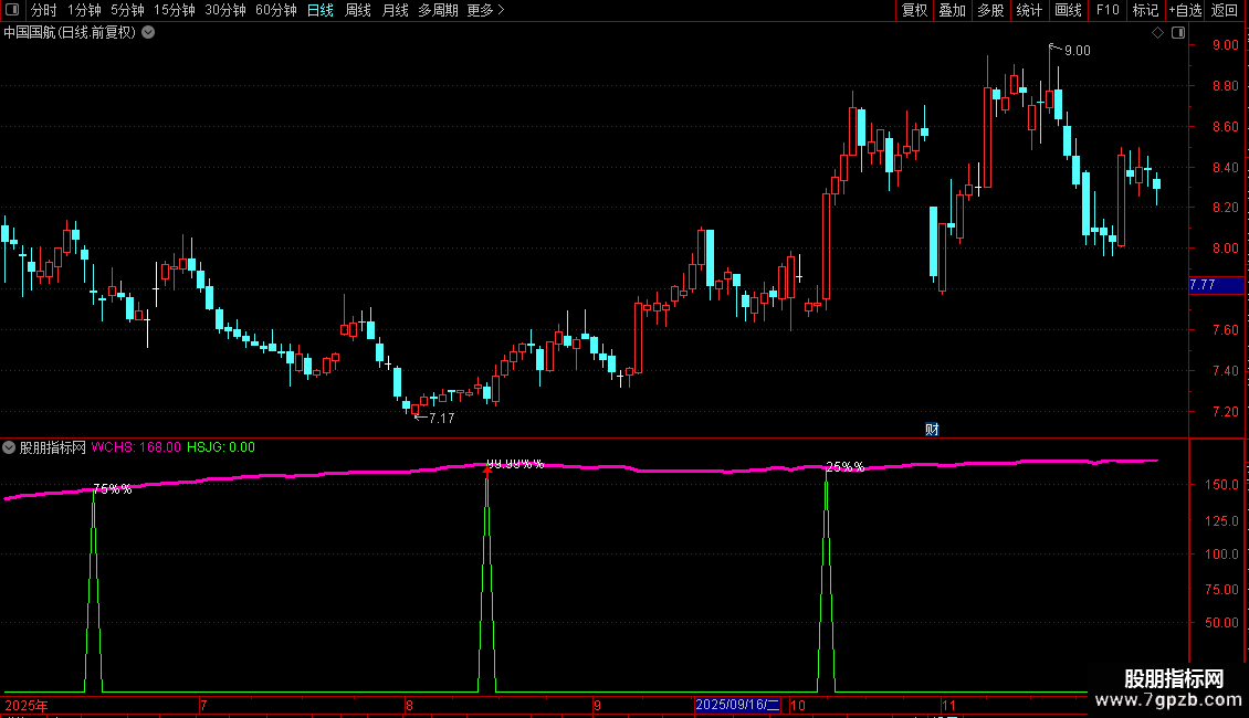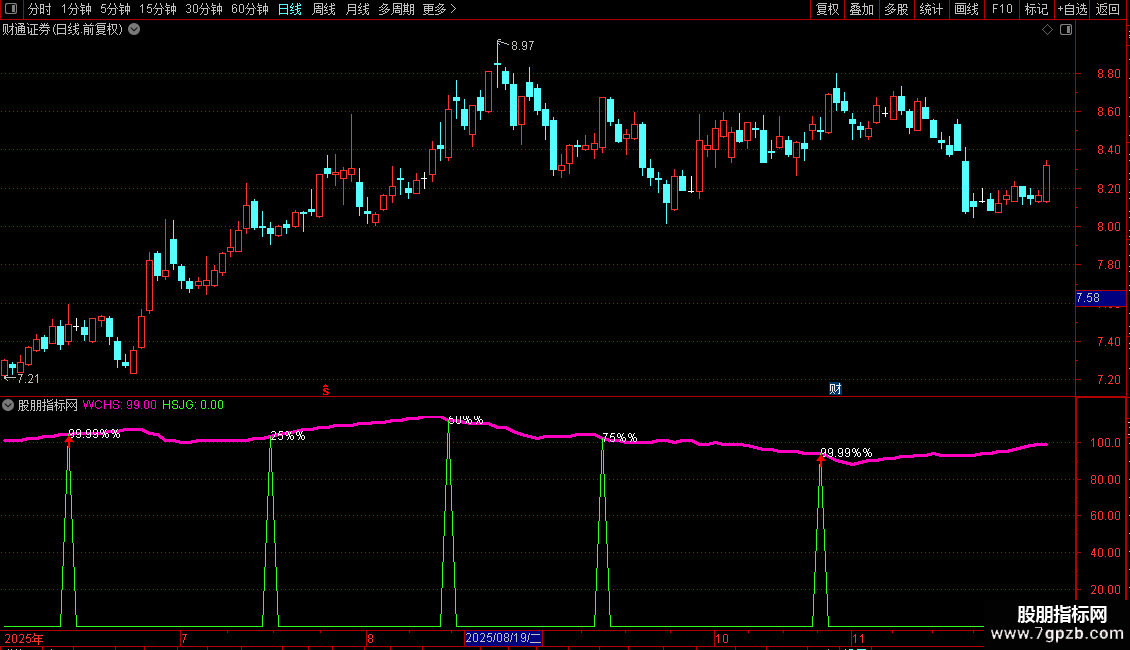 C75赋值:SH-上次CDAY>0距今天数日前的SH上穿75,NODRAW