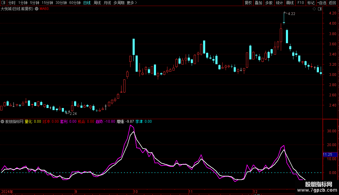 趋势:(CLOSE-MA(CLOSE,21))/MA(CLOSE,21)*100,COLORMAGENTA,LINETHICK2;