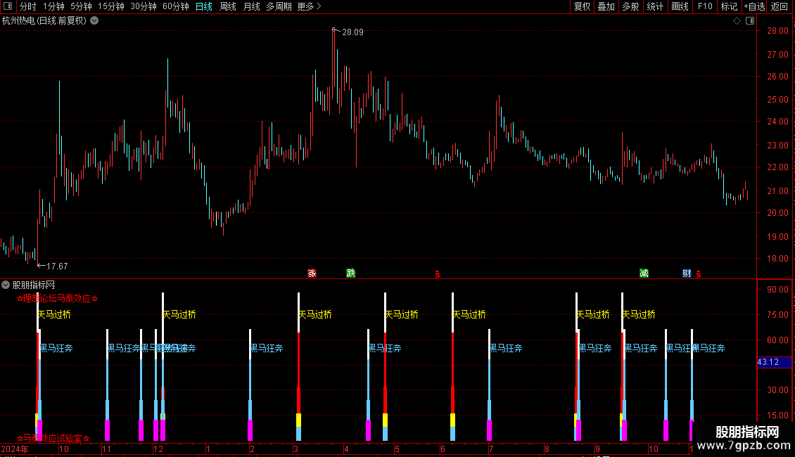 STICKLINE(小黑马>0,0,小黑马*1.1,1,0),COLORWHITE;