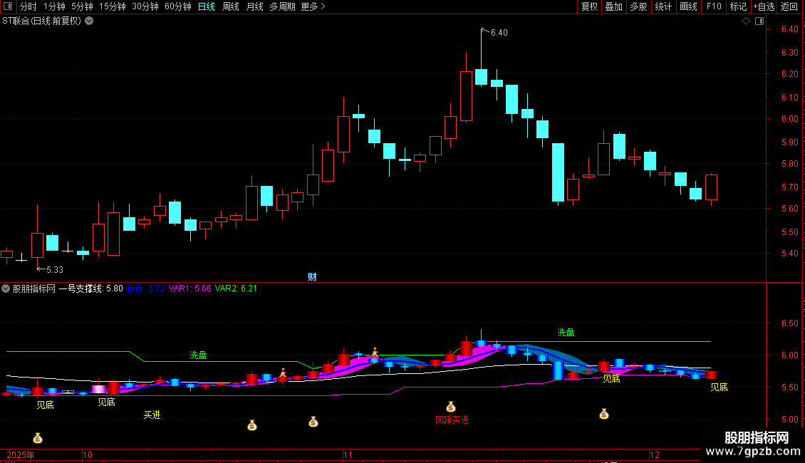 操作1:=MA(A7,5)*1.03,LINETHICK2;