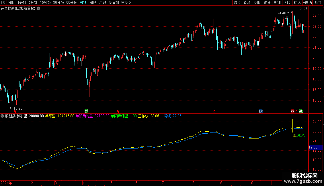 DRAWTEXT(CURRBARSCOUNT<100 AND 单阳,L*0.98,'阳'),COLOR00BBBB;